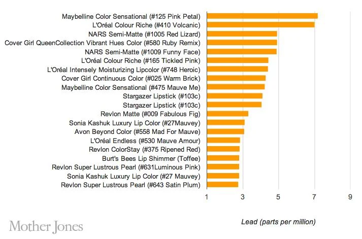 Here are the top 20 lead-containing lipsticks from the FDA’s 2012 review of 400 lipsticks:
